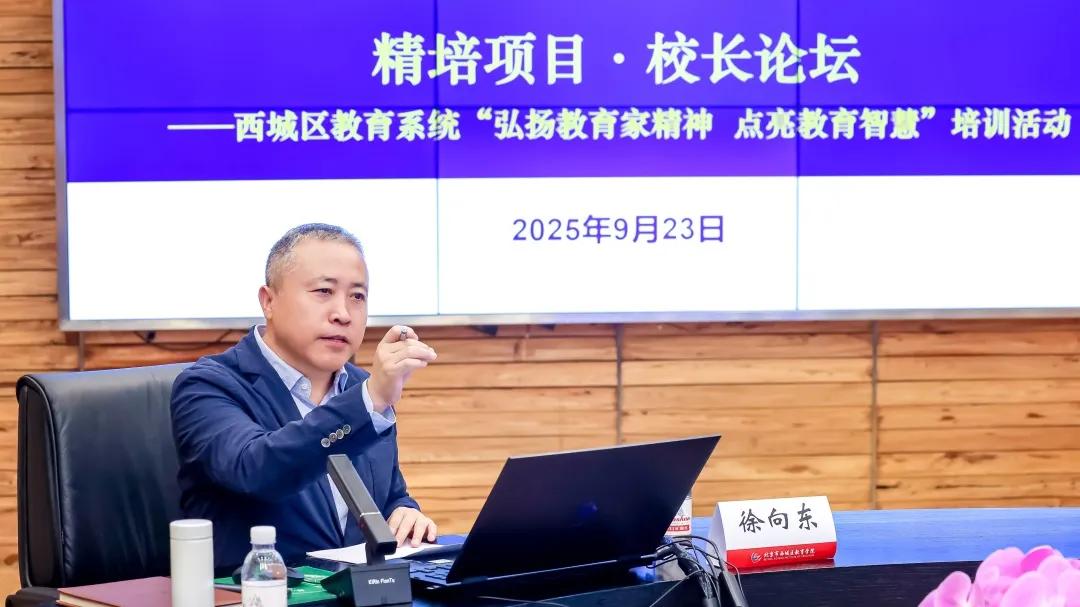 2025年9月23日上午,西城区教育系统精培项目校长论坛在我校顺利举办。此次论坛是“弘扬教育家精神,点亮教育智慧”系列活动的深度实践,聚焦教师发展与学校管理,旨在将教育家精神转化为可操作的治校能力,精培项目副班主任邹巍主持活动。