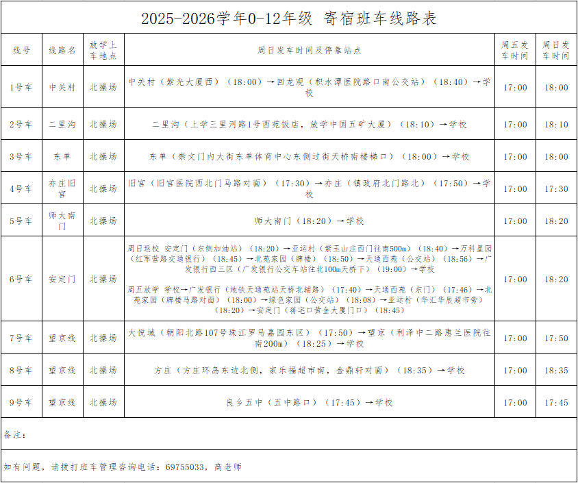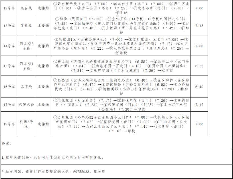 如有问题,请拨打班车管理咨询电话:69755033,高老师。