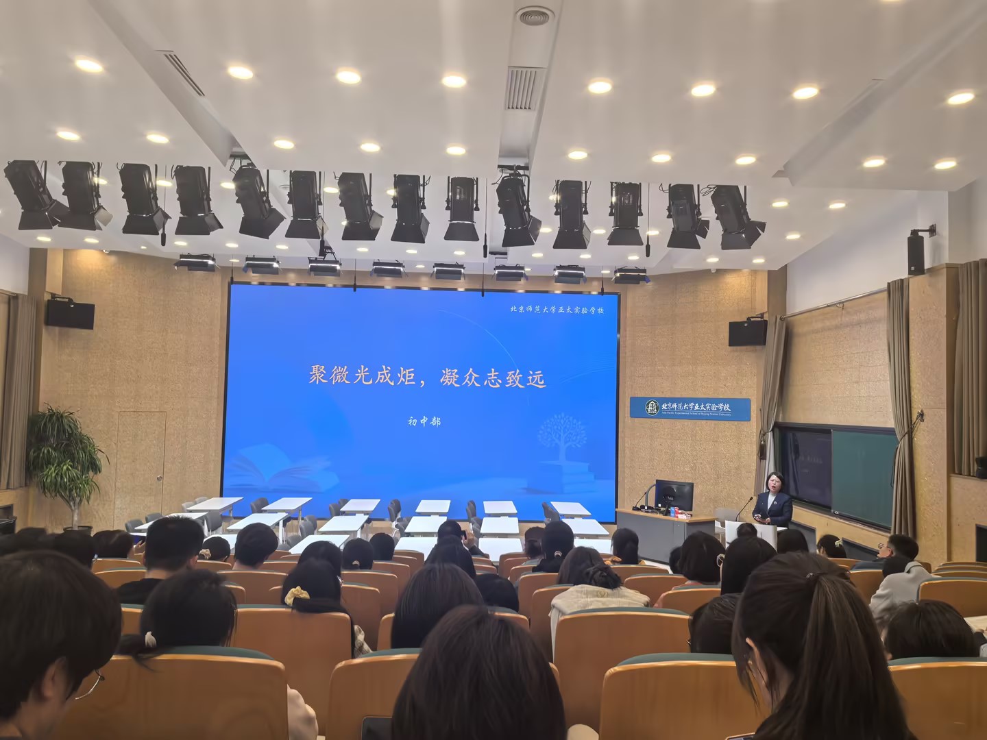 3月31日,北京师范大学亚太实验学校初中学部专题会议在明德中心举行。学部领导、全体教师,以及江西省吉安市新干三中、井冈山市碧溪初级中学的教学干部和教师代表出席会议,共话教学提质,共促专业成长。本次会议以“聚微光成炬,凝众志致远”为主题,聚焦课堂教学痛点难点,分享实践经验,凝聚育人合力。