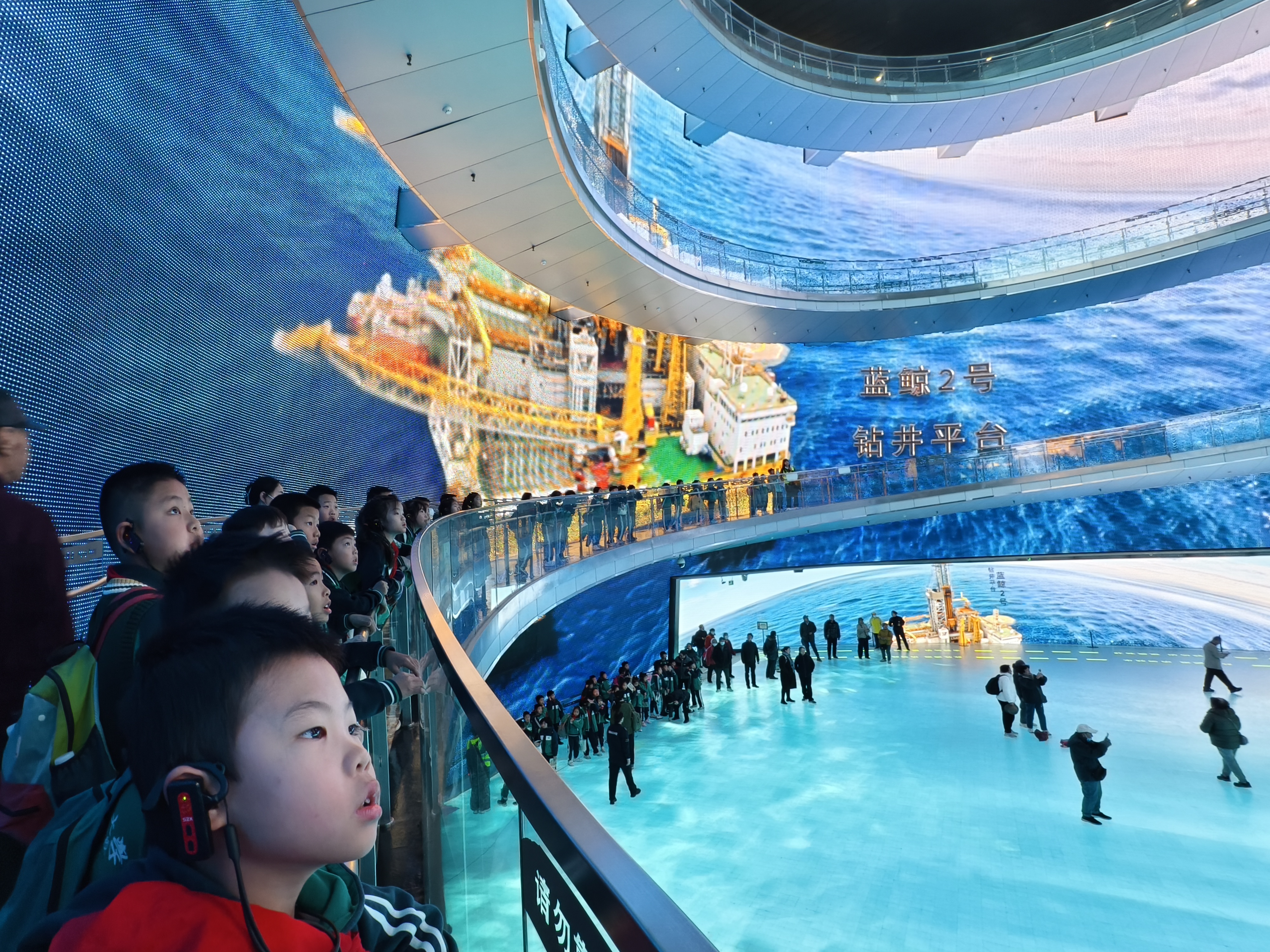 赛场活力未散,艺术熏陶接踵而至。近日,同学们怀着好奇走进中国电影博物馆,开启沉浸式探索之旅。一层圆厅的360度巨屏率先带来震撼体验,科教影片中,远古恐龙、港珠澳大桥、浩瀚太空等场景轮番切换,孩子们的惊呼声与赞叹声不绝于耳。在电影艺术展览区,大家循着展品脉络,从黑白胶片到彩色银幕,从无声电影到有声画卷,读懂中国电影百年发展的厚重。