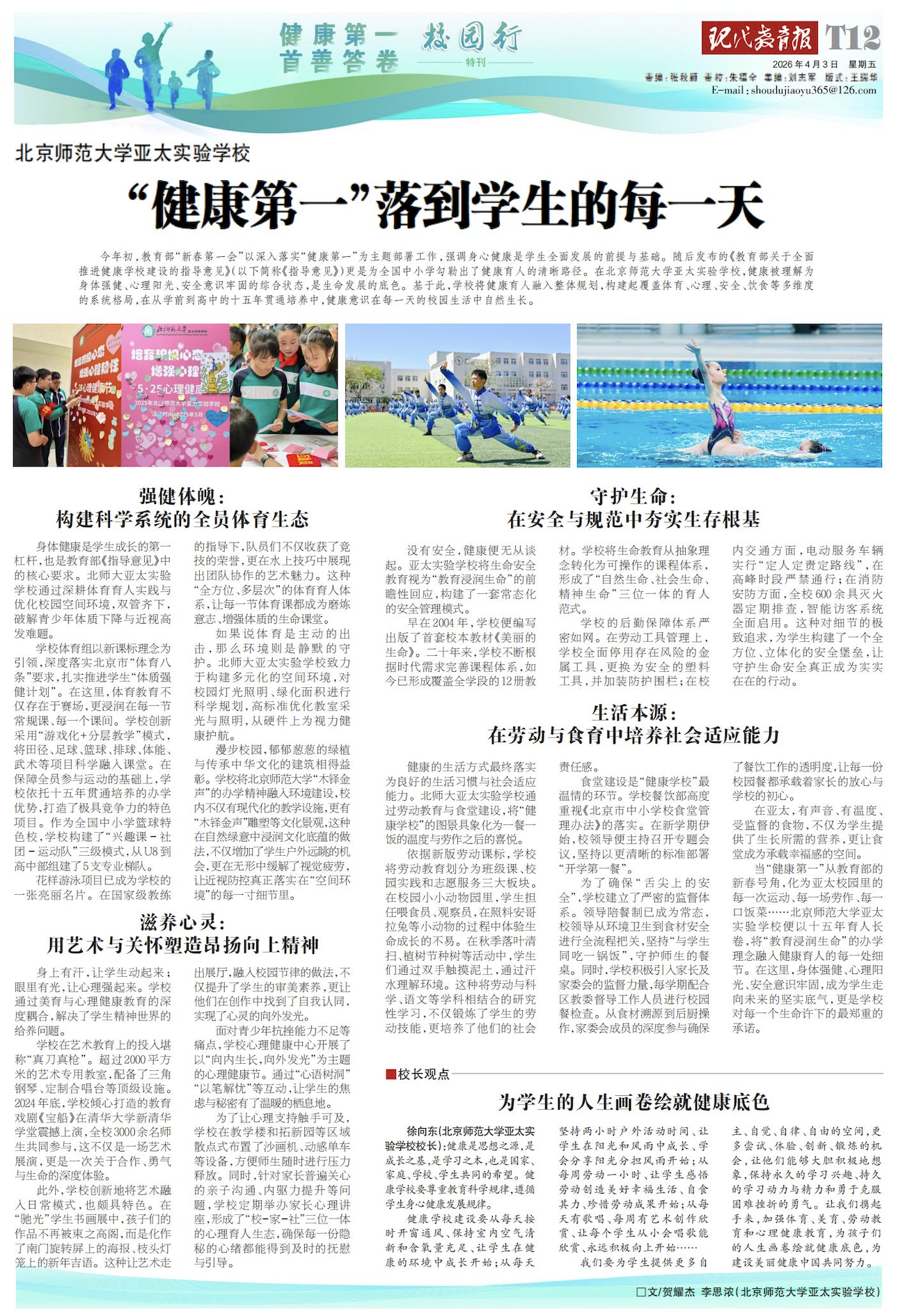 【媒体报道】《现代教育报》报道“北师大亚太实验学校:把‘健康第一’种进每一天”